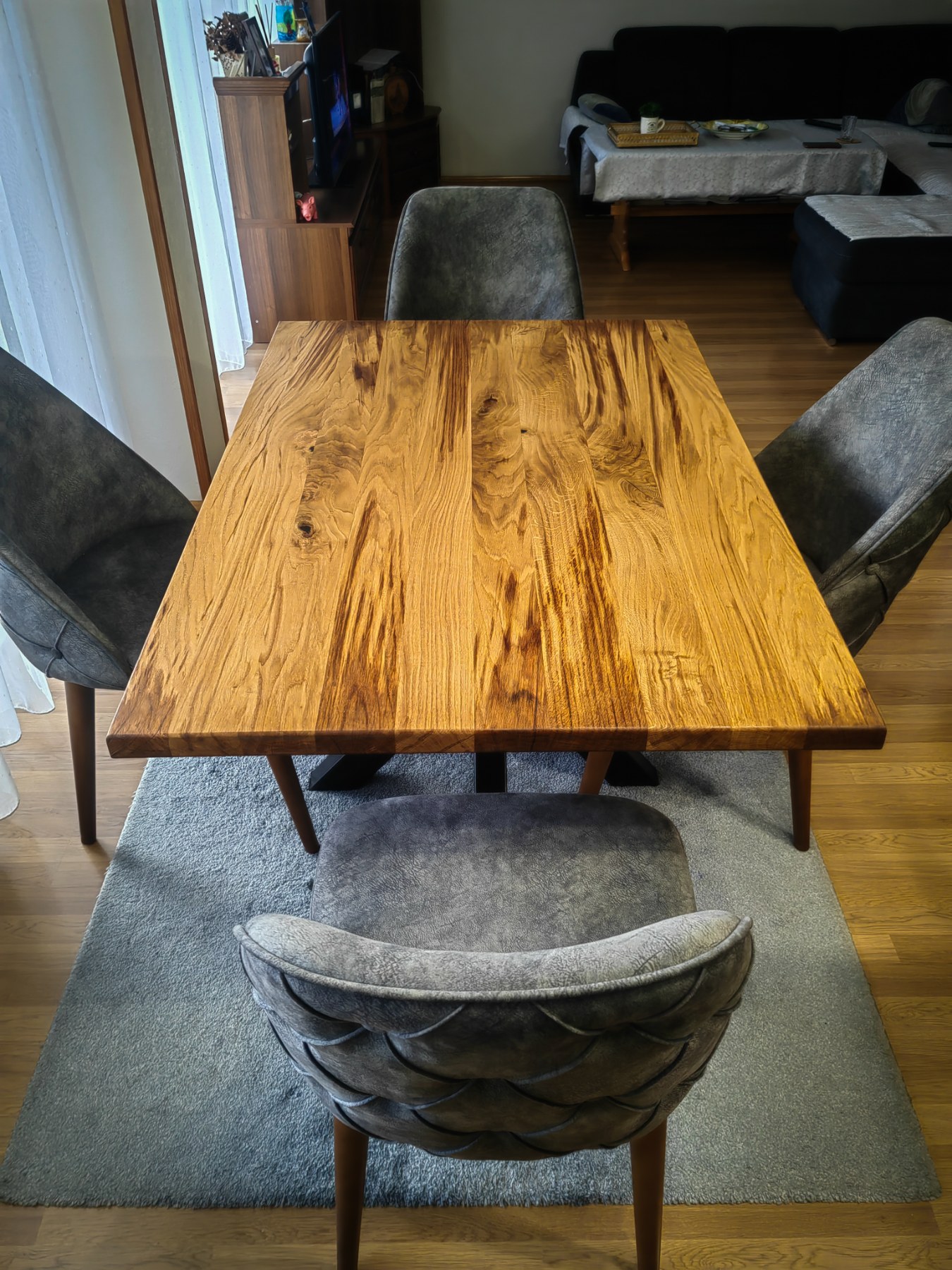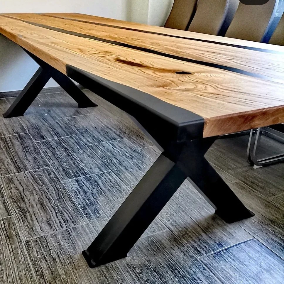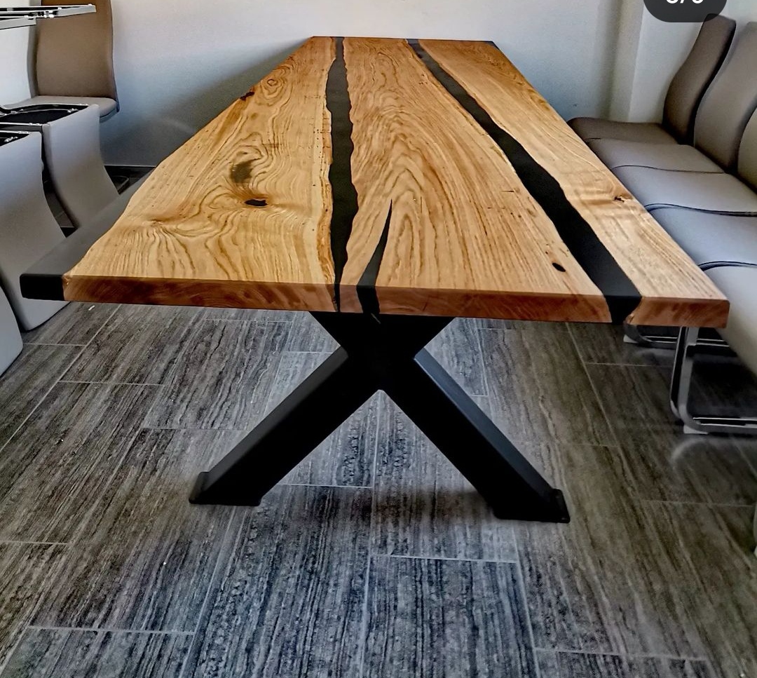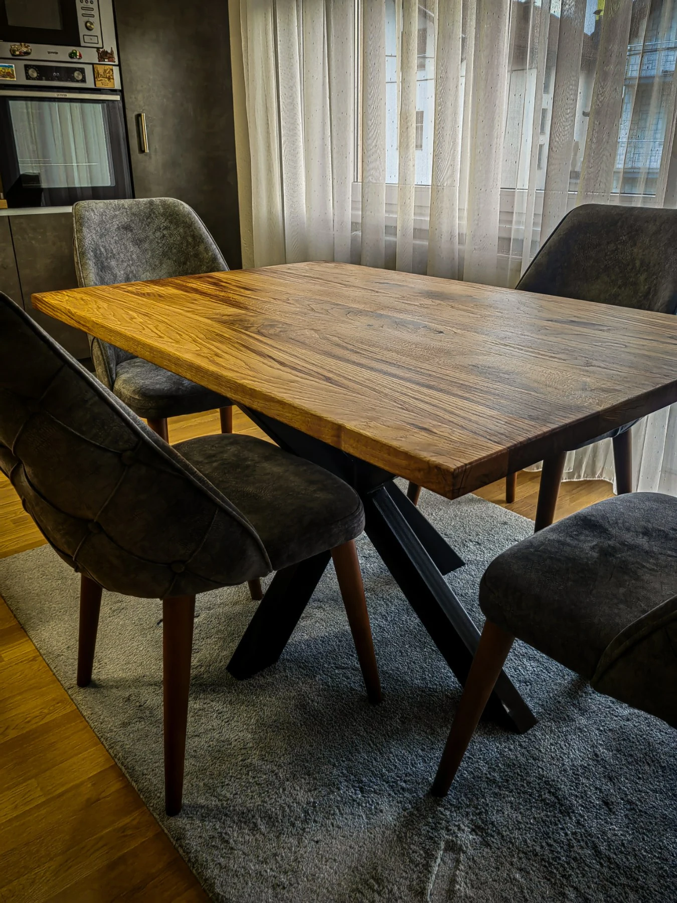 Ploča hrast dimenzija 140x90x4cm. Pauk metalni nogari. Crna mat farba.