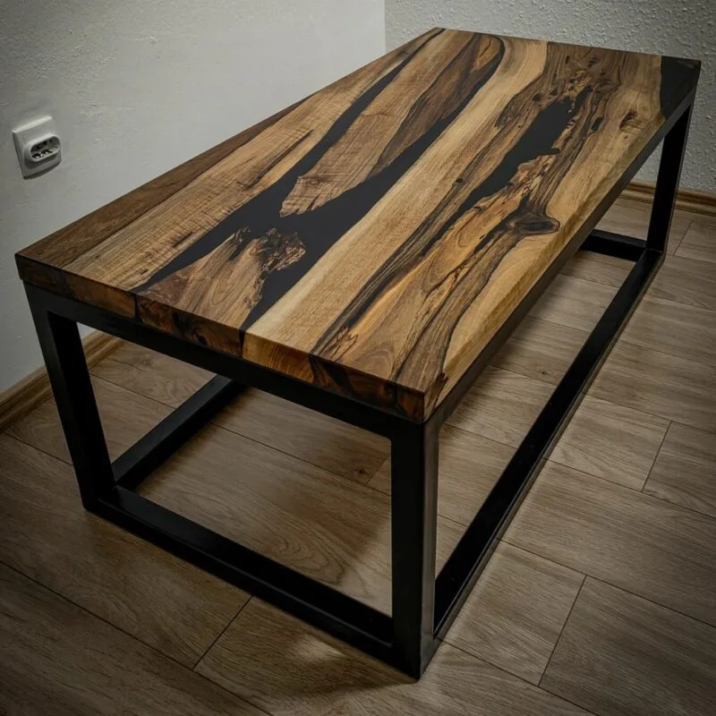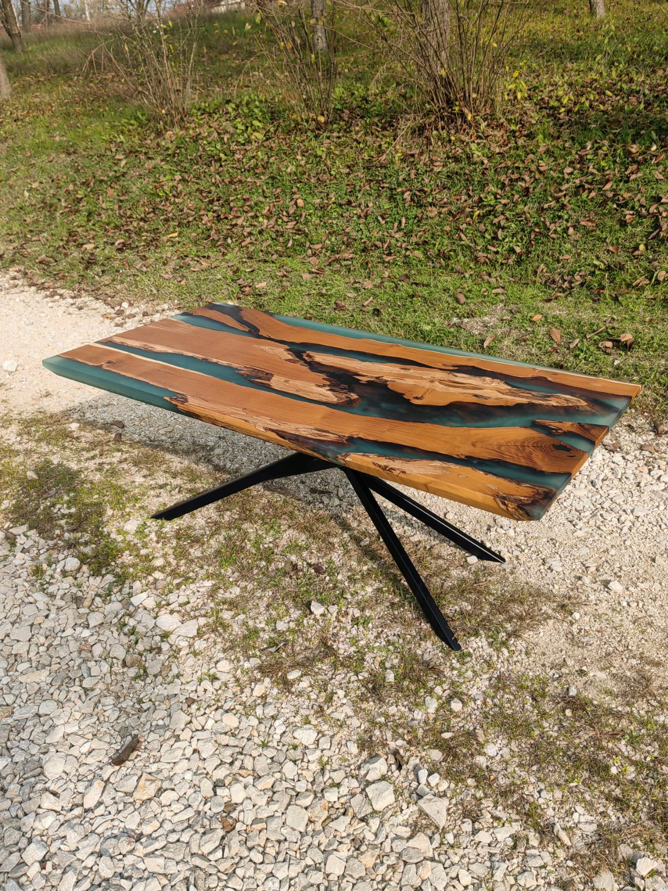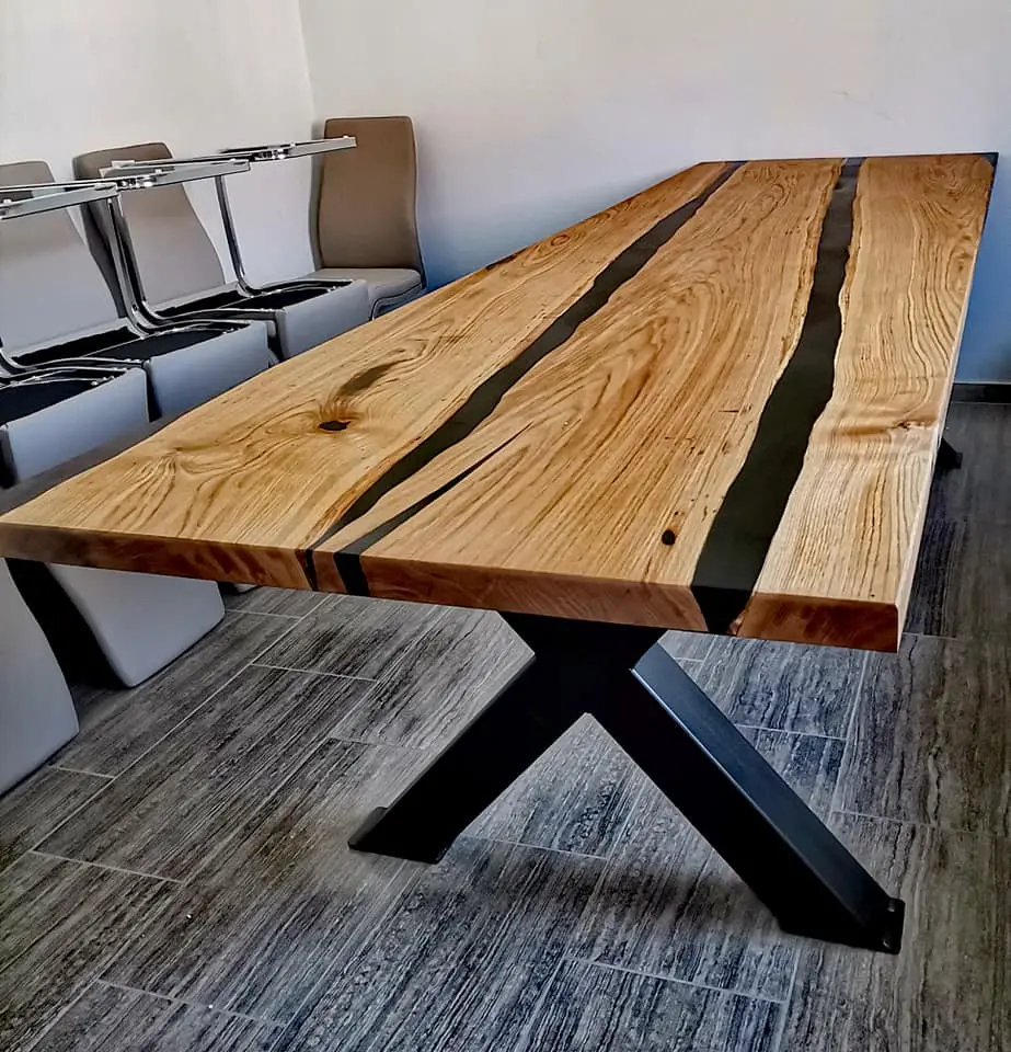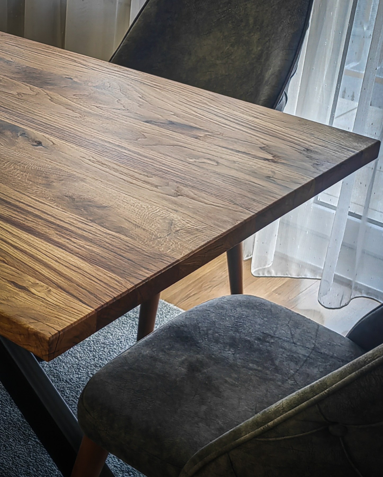 Ploča hrast dimenzija 140x90x4cm. Pauk metalni nogari. Crna mat farba.