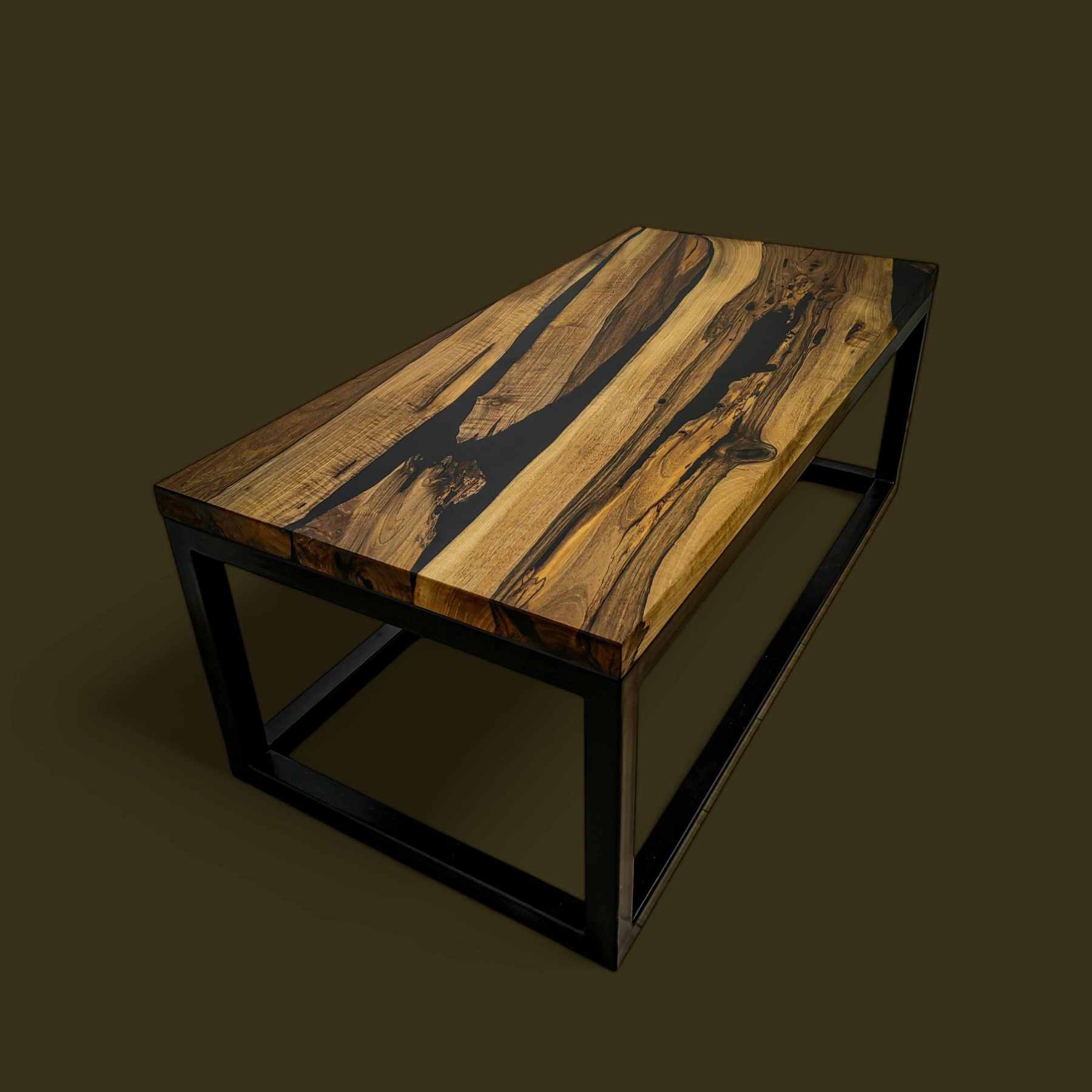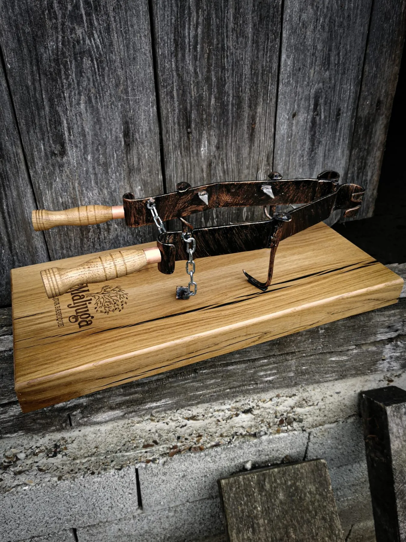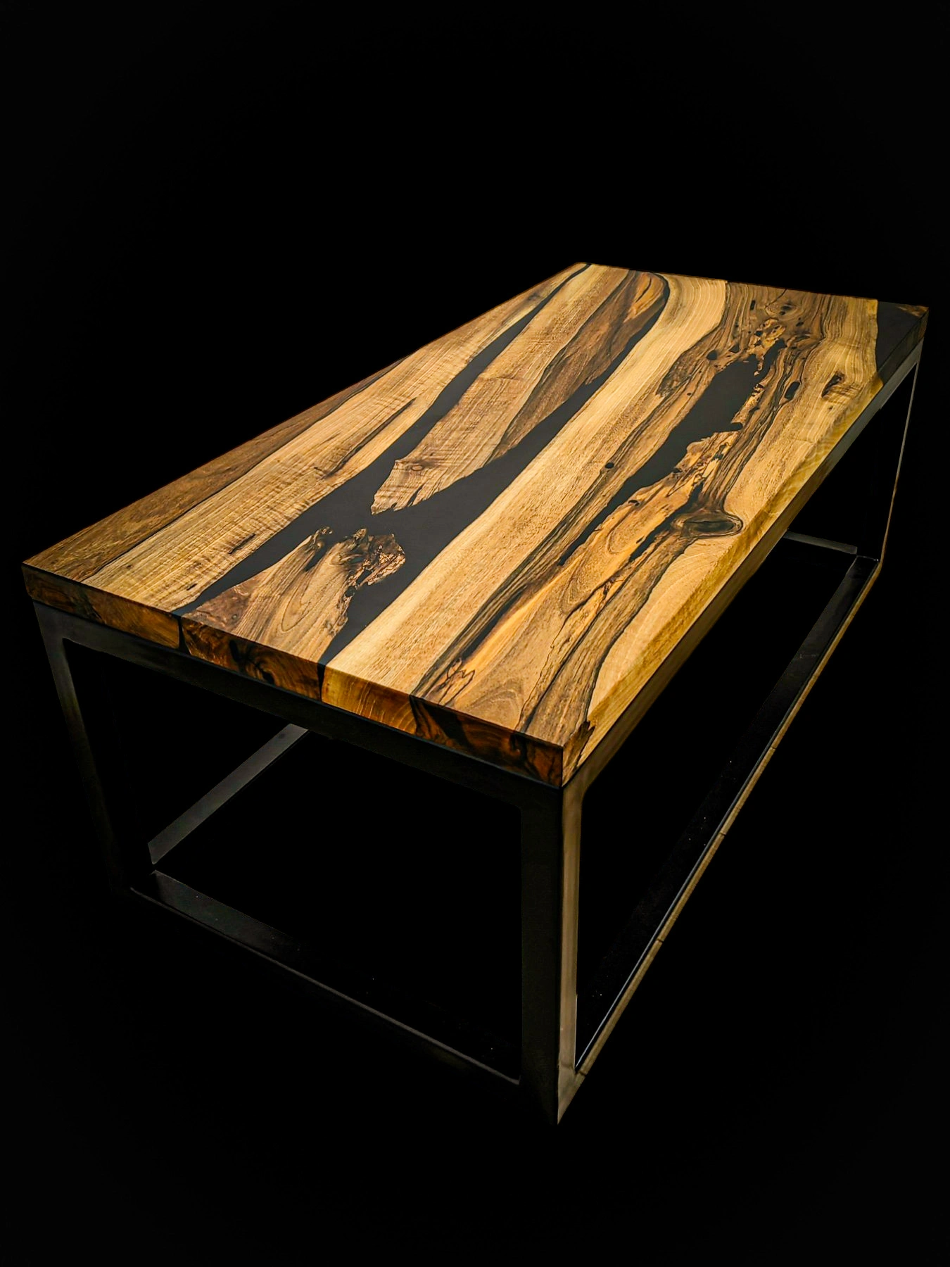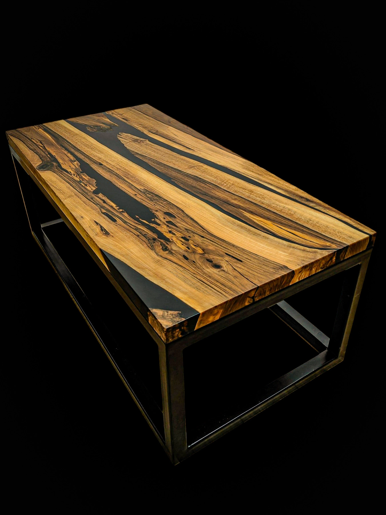Ploča za umivaonik hrast sa prirodnom ivicom. Okvir za ogledalo od metala i drveta. Poliuretan lak.